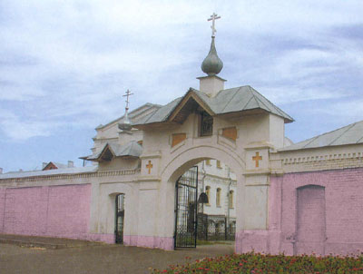 причта, каменные ворота с аркой, а возле них - двухэтажный дом для вратарницы и смотрительницы